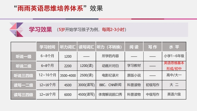 3 “雨雨英语思维培养体系”的能达到的效果: